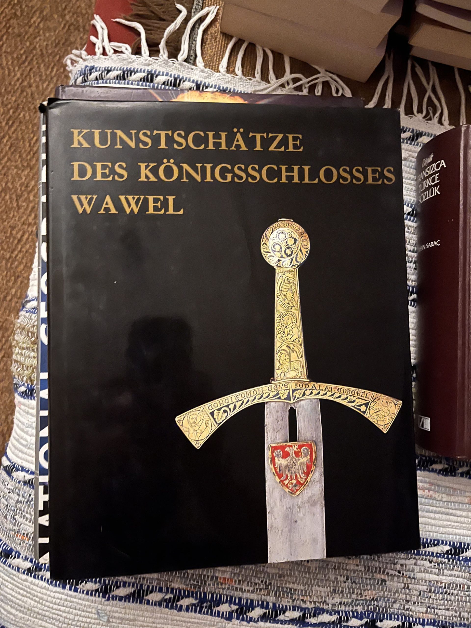 Kara kaplı olan, Wawel Kraliyet Şatosu’nun Sanat Hazineleri adlı bir çalışma. 50 sayfa kadarı Almanca, kalanı tamamen resim. Kitap, Kraków’daki (Polonya) Wawel Kraliyet Şatosu’nun tarihsel serüvenini Polonya monarşisinin yükseliş ve çöküşleriyle birlikte ele alıyor, şatodaki sanat eserlerini (14-16. yüzyıl) iktidar, temsil ve kültür politikalarının somut izleri olarak okuyor.